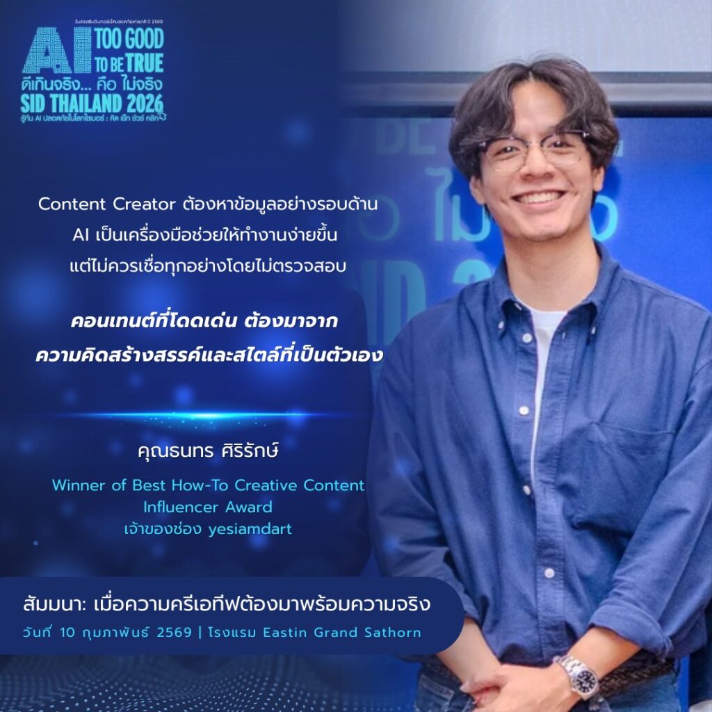 สัมมนา เมื่อความครีเอทีฟต้องมาพร้อมความจริง Balancing between Creativity and Authenticity in Content Creationเนื่องในวันส่งเสริมอินเทอร์เน็ตปลอดภัยแห่งชาติ 2569 ณ โรงแรมอีสติน แกรนด์ สาทร กรุงเทพ วันที่ 9-10 ก.พ. 2569
