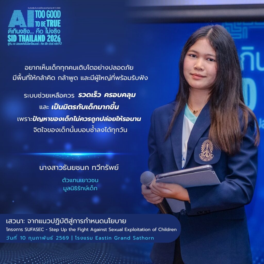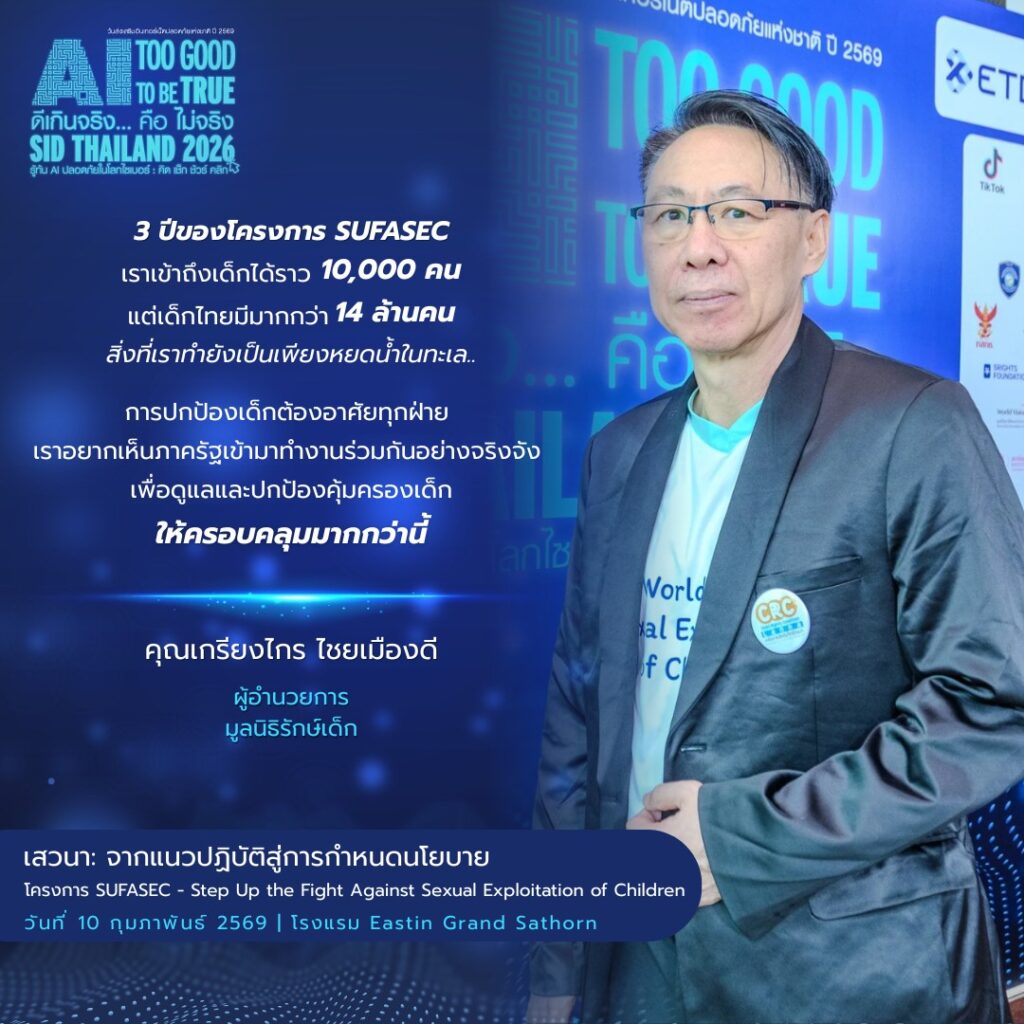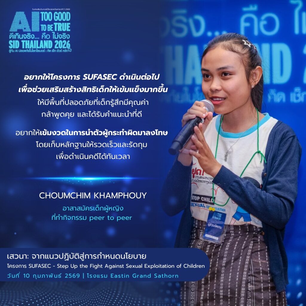 โครงการ SUFASEC ย่อมาจาก Step Up the Fight Against Sexual Exploitation of Children ซึ่งเป็นโครงการเพื่อการป้องกันและตอบสนองต่อเด็กในทุกรูปแบบเพื่อต่อต้านการแสวงประโยชน์ทางเพศต่อเด็ก โดยทำงานกับทุกภาคส่วน ทั้งเด็กและเยาวชน ผู้ปกครอง ชุมชน โรงเรียน ภาคประชาสังคม ภาครัฐและภาคเอกชน เพื่อสร้างการเปลี่ยนแปลงอย่างเป็นระบบและยั่งยืน