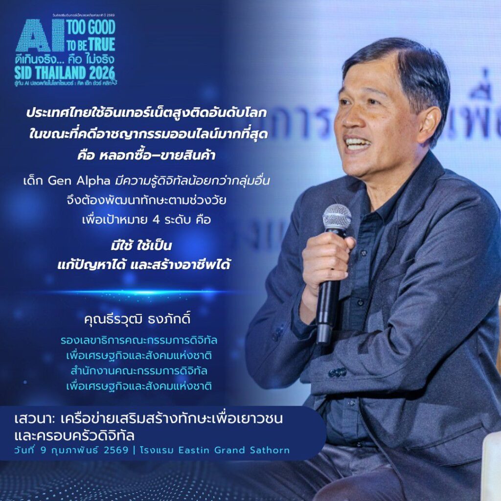 Session 4 Digital Intelligence for Youth and Digital Families – เครือข่ายเสริมสร้างทักษะเพื่อเยาวชนและครอบครัวดิจิทัล เนื่องในวันส่งเสริมอินเทอร์เน็ตปลอดภัยแห่งชาติ 2569 ณ โรงแรมอีสติน แกรนด์ สาทร กรุงเทพ วันที่ 9-10 ก.พ. 2569
