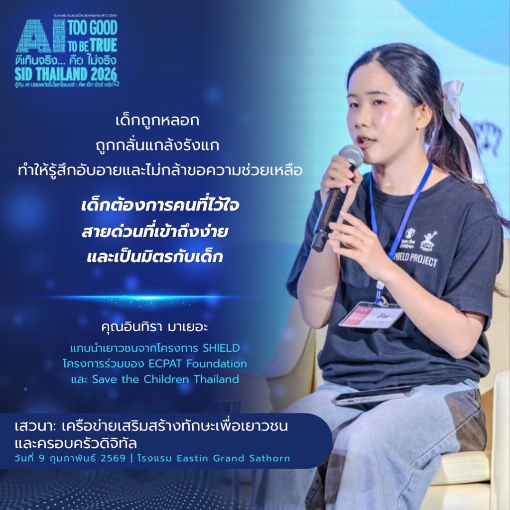 Session 3 Voices for Change A Multi-Stakeholder Dialogue on Youth-Led Online Safety Solutions – พลังเสียงเพื่อการเปลี่ยนแปลง: เวทีเสวนาพหุภาคีเพื่อแนวทางเสริมสร้างความปลอดภัยออนไลน์นำโดยเยาวชน เนื่องในวันส่งเสริมอินเทอร์เน็ตปลอดภัยแห่งชาติ 2569 ณ โรงแรมอีสติน แกรนด์ สาทร กรุงเทพ วันที่ 9-10 ก.พ. 2569