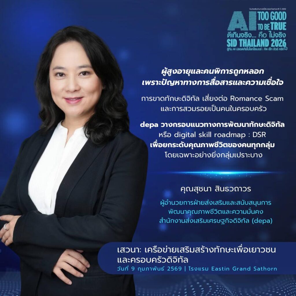 สำนักงานส่งเสริมเศรษฐกิจดิจิทัล หรือ depa ทำงานกับกลุ่มเปราะบาง เช่น ผู้สูงอายุหรือคนพิการ ในการพัฒนาทักษะดิจิทัล ซึ่งมีข้อท้าทาย เช่น ข้อจำกัดด้านภาษาและการสื่อสาร ผู้สูงวัยมีพื้นฐานไว้วางใจคนง่ายจึงเป็นเหยื่อของการหลอกลงทุนและหลอกให้รัก (romance scam) เอไอยิ่งมาทำให้การหลอกลวงในยุคนี้สมจริงมากขึ้น จนเหยื่อแยกไม่ออก ทาง depa จึงมีโครงการ “Digital Skill Roadmap” ตั้งแต่ปี 2568 มุ่งยกระดับทักษะดิจิทัลคนไทย 67 ล้านคน ผ่าน 3 กลุ่มหลัก: ทักษะพื้นฐาน (Digital Skill for All), ทักษะอาชีพใหม่ (Digital-driven Career), และทักษะวิชาชีพขั้นสูง (Digital Professional) เพื่อรองรับ 9 อาชีพอนาคตที่ขาดแคลน