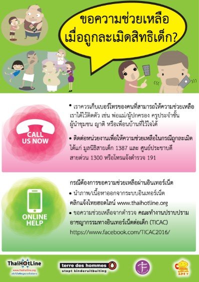 โปสเตอร์ ขอความช่วยเหลือเมื่อถูกละเมิดสิทธิเด็ก